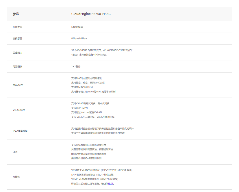 CloudEngine S6750-H系列100GE交换机是华为新一代企业级核心和汇聚层交换机,提供36个100GE光口