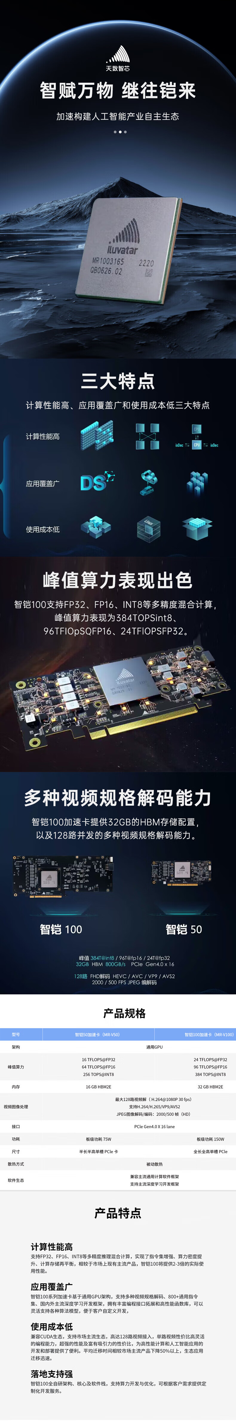 > 产品中心> 联想服务器【配件】国产信创寒武纪天数智芯智铠50/100人工智能AICG 推理卡 计算卡 智铠100 32G>